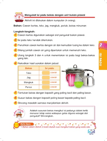 Menyukat isi padu air dalam unit bukan piawai Menyukat isi padu bekas dengan unit bukan piawai