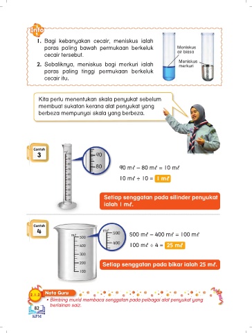 • Bimbing murid membaca senggatan pada pelbagai alat penyukat yang