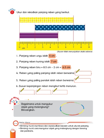 1 Ukur dan rekodkan panjang reben yang berikut.