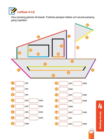 Ukur panjang garisan di bawah. Tuliskan jawapan dalam unit ukuran panjang