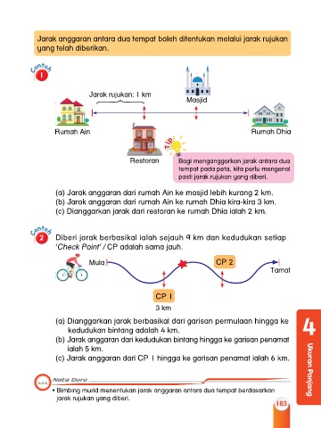 • Bimbing murid menentukan jarak anggaran antara dua tempat berdasarkan