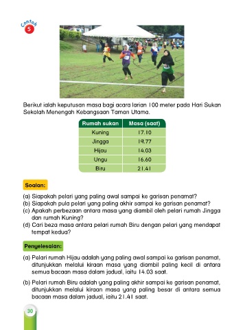 (a) Pelari rumah Hijau adalah yang paling awal sampai ke garisan penamat,