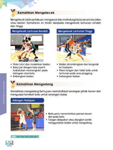 atau berlari. Kemahiran ini terdiri daripada mengelecek lantunan rendah Aktiviti Berkumpulan