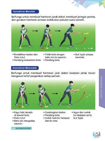 Kemahiran menghantar fleksi lutut. bahu kiri ke sasaran. menolak.