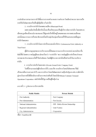 ตารางท 3-1 รูปแบบการบรหารท่าเรอ