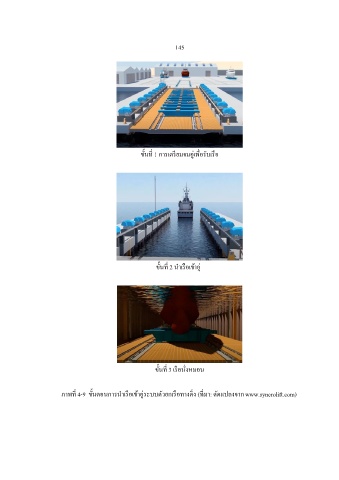 145 ู ขั้นท 1 การเตรยมจมอ่เพือรบเรอ ี ี ่ ั ื ่ ี ู ื ขั้นท 2 น าเรอเข้าอ่ ่ ขั้นท 3 เรอนั่งหมอน ่ ี ื ี ภาพท 4-9 ขั้นตอนการน าเรอเข้าอ่ระบบตัวยกเรอทางด่ง (ทมา: ดัดแปลงจาก www.syncrolift.com) ู ิ ื ่ ี่ ื