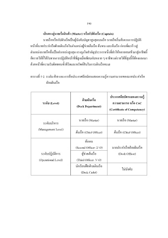 ตำรำงท 5-2 ระดับ ฝำย และกำรถอประกำศนยบัตรแสดงควำมรควำมสำมำรถของนำยประจ ำเรอ