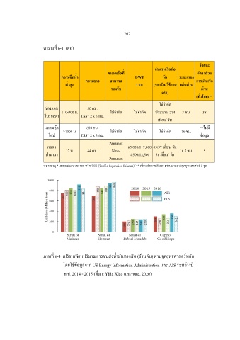 ภาพท 6-4 เปรยบเทยบปรมาณการขนส่งน ้ามันทางเรอ (ล้านตัน) ผ่านจดยุทธศาสตรหลัก