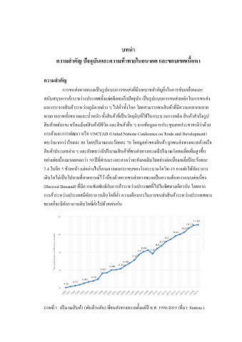 ภาพท 1 ปรมาณสนค้า (พันล้านตัน) ทขนส่งทางทะเลตั้งแต่ป ค.ศ. 1990-2019 (ทมา: Statista )