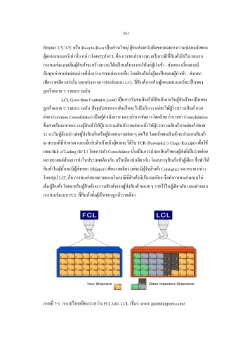 โดยสรป LCL คอ การขนส่งทางทางทะเลในกรณทสนค้ามปรมาณน้อย ซงท าการขนส่งแบบไม่
