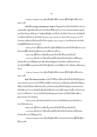 - Customs Clearance Point: ผู้ขายเปนผู้ผ่านพิธการขาออก ผู้ซ้อเปนผู้ผ่านพิธการผ่าน