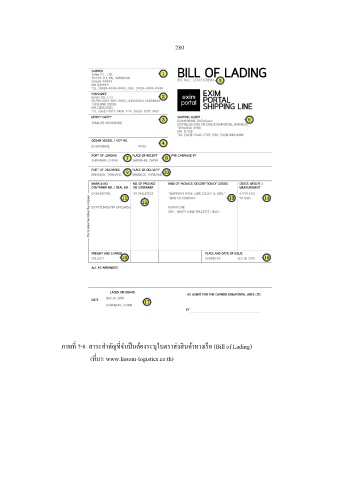 280 ็ ่ ี ิ ื ุ ภาพท 7-8 สาระส าคัญทจ าเปนต้องระบใบตราส่งสนค้าทางเรอ (Bill of Lading) ี่ (ทมา: www.lissom-logistics.co.th) ี่