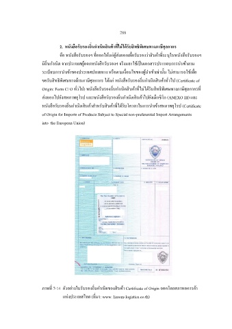 ภาพท 7-14 ตัวอย่างใบรบรองถ่นก าเนดของสนค้า Certificate of Origin ออกโดยสภาหอการค้า