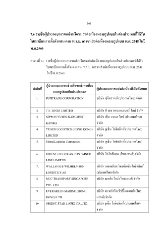 7.6 รำยชอผูประกอบกำรขนสงหรอขนสงตอเนองหลำยรูปแบบในตำงประเทศทีไดรบ
