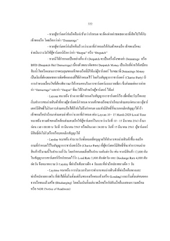 - Laytime หมายถง การนับเวลาในการท างานขนถ่ายสนค้าทท่าเรอต้นทางและ