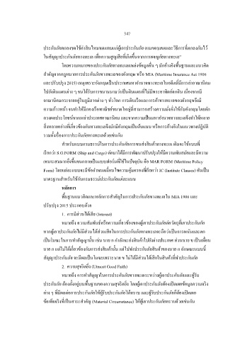 พื้นฐานแนวคดและหลักการส าคัญในการประกันภัยทางทะเลใน MIA 1906 และ
