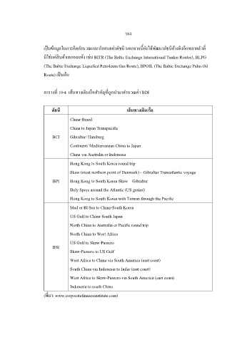 ตารางท 10-4 เสนทางเดนเรอส าคัญทถกน ามาค านวณค่า BDI