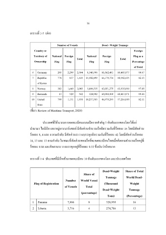 ปานามา ไลบเรย และหม่เกาะมารแชลล์ มสัดส่วนจ านวนเรอคดรวมกันทรอยละ 16 โดยมสัดส่วน