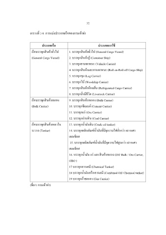 ตารางท 1-8 การแบ่งประเภทเรอของกรมเจ้าท่า