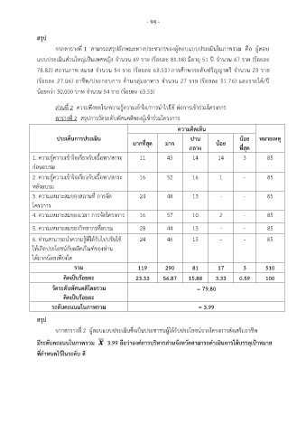 มีระดับคะแนนในภาพรวม ̅ 3.99 ถือว่าองค์การบริหารส่วนจังหวัดสามารถด าเนินการได้บรรลุเป้าหมาย