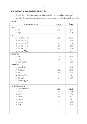 ตารางที่ 1 จ านวนและร้อยละของลักษณะทางประชากรโดยรวมโครงการเสริมสร้างความเข้มแข็งสถาบัน