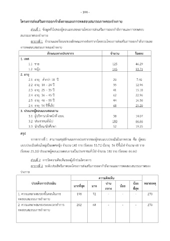 แบบประเมินส่วนใหญ่เป็นเพศหญิง จ านวน 145 ราย (ร้อยละ 53.71) มีอายุ 56 ปีขึ้นไป จ านวน 68 ราย