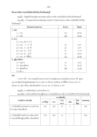 ส่วนที่ 1 ข้อมูลทั่วไปของผู้ตอบแบบสอบถามโครงการจัดการแข่งขันกฬานักเรียนจังหวัดลพบุรี