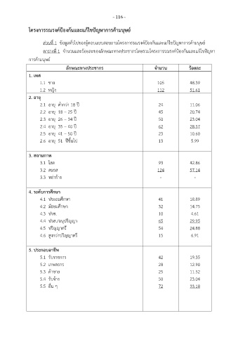 ตารางที่ 1 จ านวนและร้อยละของลักษณะทางประชากรโดยรวมโครงการรณรงค์ป้องกันและแกไขปัญหา