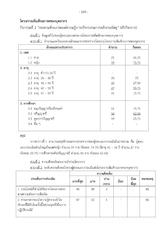 ส่วนที่ 1 ข้อมูลทั่วไปของผู้ตอบแบบสอบถามโครงการเพิ่มศักยภาพของบุคลากร