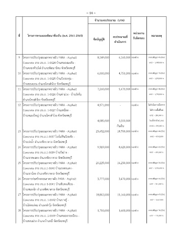 14 โครงการปรับปรุงถนนลาดยางผิว PARA - Asphalt 9,319,000 8,620,000 กองชาง ลงนามสญญา 43/2562