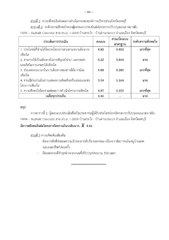 ตารางที่ 2 ระดับความพงพอใจของผู้ตอบแบบประเมินต่อโครงการปรับปรุงถนนลาดยางผิว