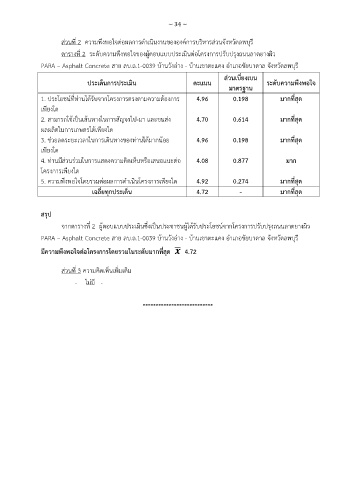 ตารางที่ 2 ระดับความพงพอใจของผู้ตอบแบบประเมินต่อโครงการปรับปรุงถนนลาดยางผิว