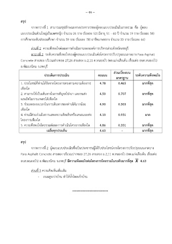 ตารางที่ 2 ระดับความพงพอใจของผู้ตอบแบบประเมินต่อโครงการปรับปรุงถนนลาดยาง Para Asphalt