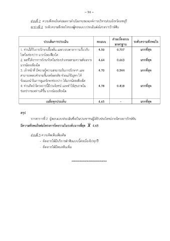 จากตารางที่ 2 ผู้ตอบแบบประเมินซึ่งเป็นประชาชนผู้ได้รับประโยชน์จากโครงการรักษฟัน