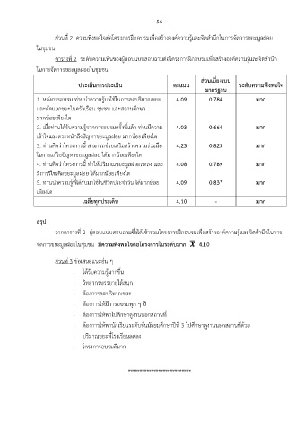 ส่วนที่ 2 ความพึงพอใจต่อโครงการฝึกอบรมเพื่อสร้างองค์ความรู้และจิตส านึกในการจัดการขยะมูลฝอย