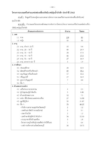 ตารางที่ 1 จ านวนและร้อยละของลักษณะทางประชากรโดยรวมโครงการอบรมเครือข่ายแหล่งท่องเที่ยว