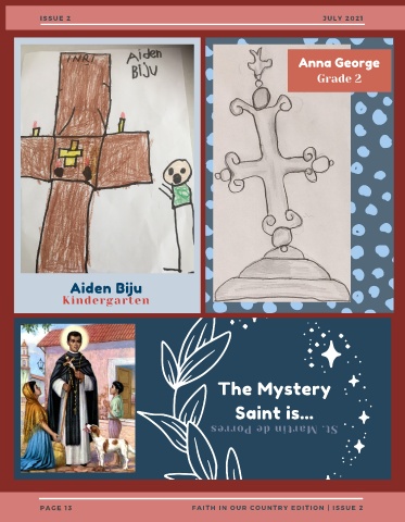 ISSUE 2 JULY 2021 Anna George Grade 2 Aiden Biju Kindergarten The Mystery Saint is... St. Martin de Porres PAGE 13 FAITH IN OUR COUNTRY EDITION | ISSUE 2