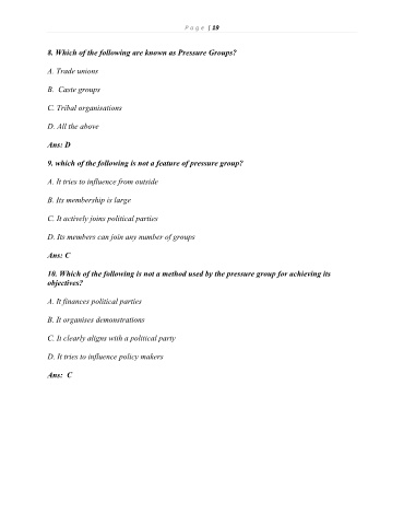 8. Which of the following are known as Pressure Groups?