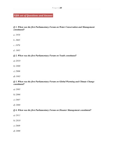 Q 1. When was the first Parliamentary Forum on Water Conservation and Management