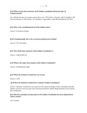 Page 9 - GK Questions and Answers on Indian Constitution and Government