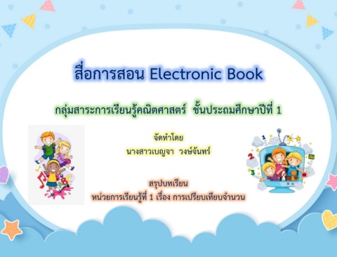 สื่อการสอน Electronic Book กลุ่มสาระการเรียนรู้คณิตศาสตร์ ชั้นประถมศึกษาปีที่ 1 จัดท าโดย นางสาวเบญจา วงษ์จันทร์ สรุปบทเรียน หน่วยการเรียนรู้ที่ 1 เรื่อง การเปรียบเทียบจ านวน