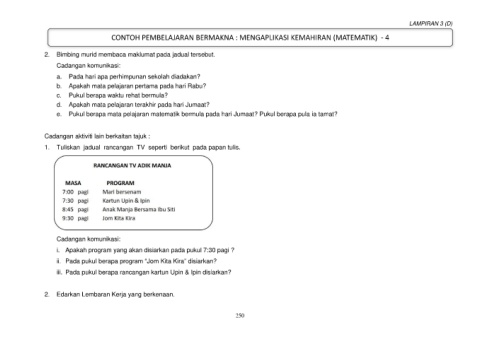 1. Tuliskan jadual rancangan TV seperti berikut pada papan tulis.