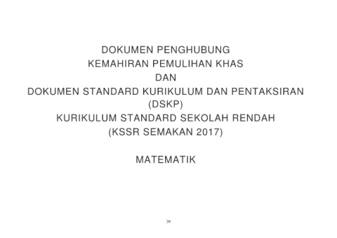 DOKUMEN PENGHUBUNG KEMAHIRAN PEMULIHAN KHAS DAN DOKUMEN STANDARD KURIKULUM DAN PENTAKSIRAN (DSKP) KURIKULUM STANDARD SEKOLAH RENDAH (KSSR SEMAKAN 2017) MATEMATIK 39