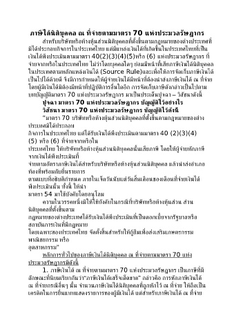 หลบกการทบ รวไปของภาษชเงงนไดนงตงบสุคคล ณ ทชจายตามมาตรา 70 แหง