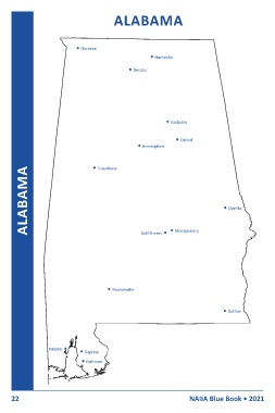 ALABAMA • Florence • Huntsville • Decatur • Gadsden • Oxford • Birmingham • Tuscaloosa ALABAMA Gulf Shores • • Montgomery • Opelika • Monroeville • Dothan Mobile • • Daphne • Fairhope 22 NAIIA Blue Book • 2021