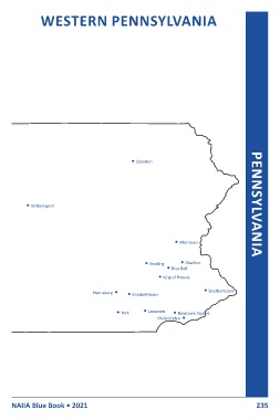WESTERN PENNSYLVANIA • Scranton • Williamsport PENNSYLVANIA • Allentown • Reading • Chalfont • Blue Bell • King of Prussia Harrisburg • • Elizabethtown • Southampton • York • Lancaster • Newtown Square Philadelphia • NAIIA Blue Book • 2021 235
