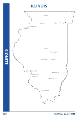ILLINOIS • Rockford • Sterling Elgin • Chicago • • Quad Cities • Moline • Peoria • Bloomington ILLINOIS Springfield • • Decatur • Granite City Effingham • • Collinsville • Belleville Mt. Vernon • • Carbondale 108 NAIIA Blue Book • 2021