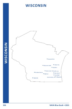 WISCONSIN WISCONSIN • Stevens Point • Green Bay • Wisconsin Dells • Appleton • Green Lake • Fond Du Lac • Richland Center • West Bend • Madison • Brookfield Oconomowac • • Milwaukee • Platteville 306 NAIIA Blue Book • 2021