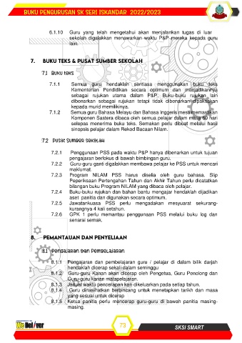 7.2.4 Buku-buku rujukan dan bahan bantu mengajar hendaklah dijadikan