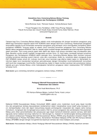 Kata kunci: guru cemerlang, kemahiran pengajaran, bahasa melayu, KOMSAS